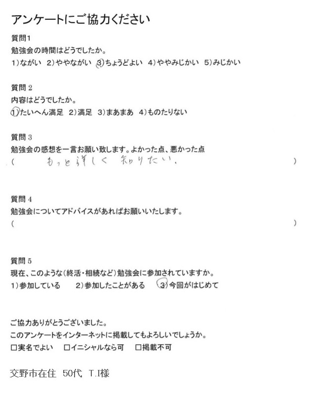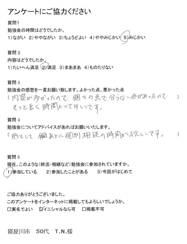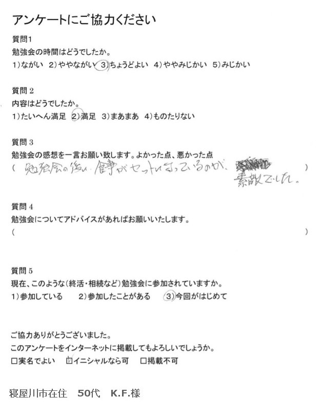 エンディングノートと遺言書の違いや、作成する場合の注意点などをていねいに教えていただいて、今は少しずつエンディングノートを書いています。